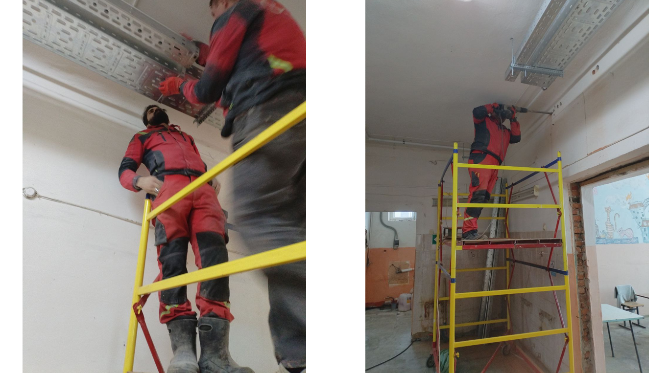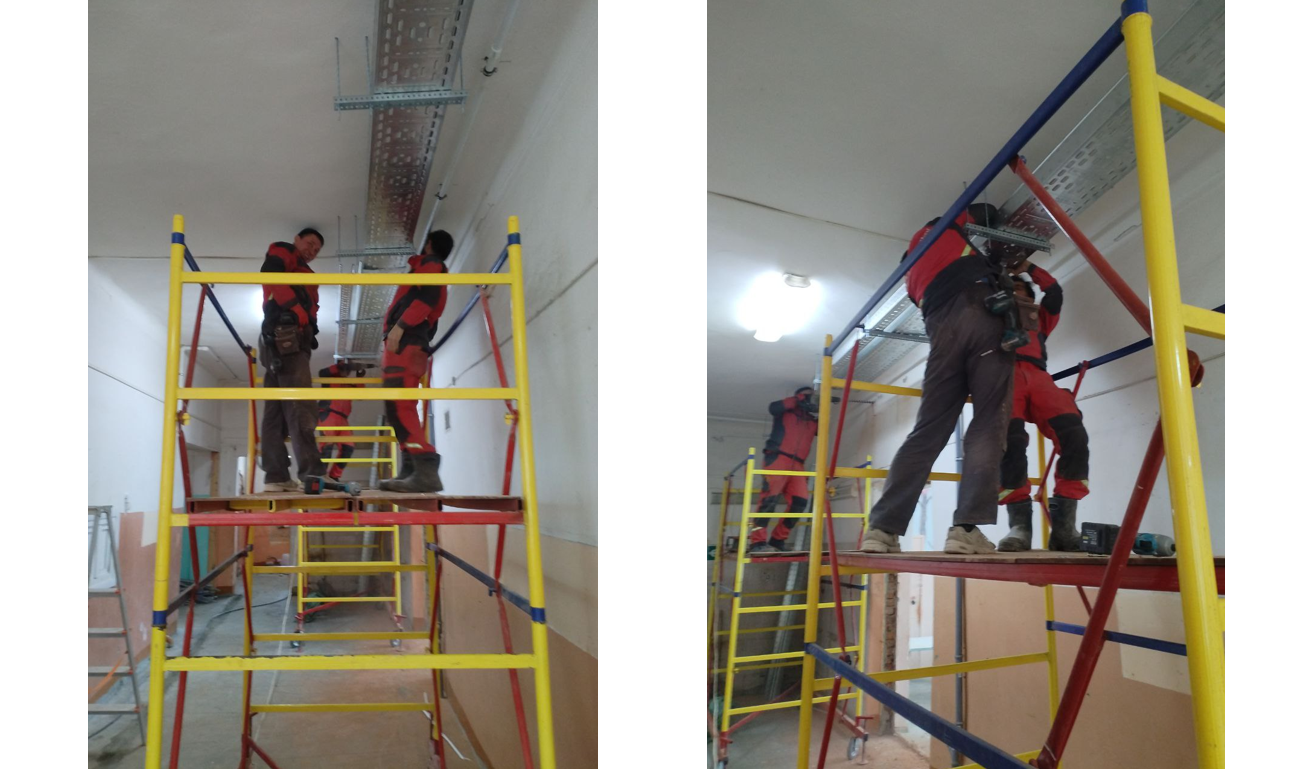Выполненные работы: монтаж кабельных лотков для электромонтажных работ, прокладка силовых линий.
