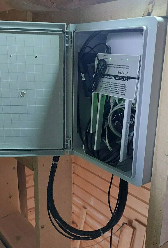 Выполненные работы: монтаж и настройка видеокамер, сети Wi-fi и сетевого оборудования, монтаж и программирование системы контроля доступа с возможностью открытия откатных ворот.
